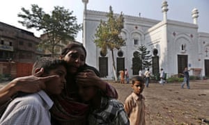 Victims' relatives outside the historic All Saints' church, the day after suicide bombers killed at least 85 people there after the Sunday service. Photo: Arshad Arbab/EPA